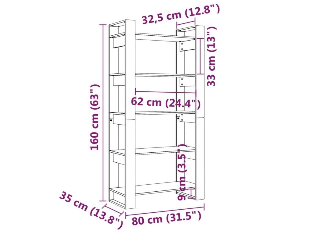 Knihovna/dělící zástěna 80 x 35 x 160 cm masivní dřevo