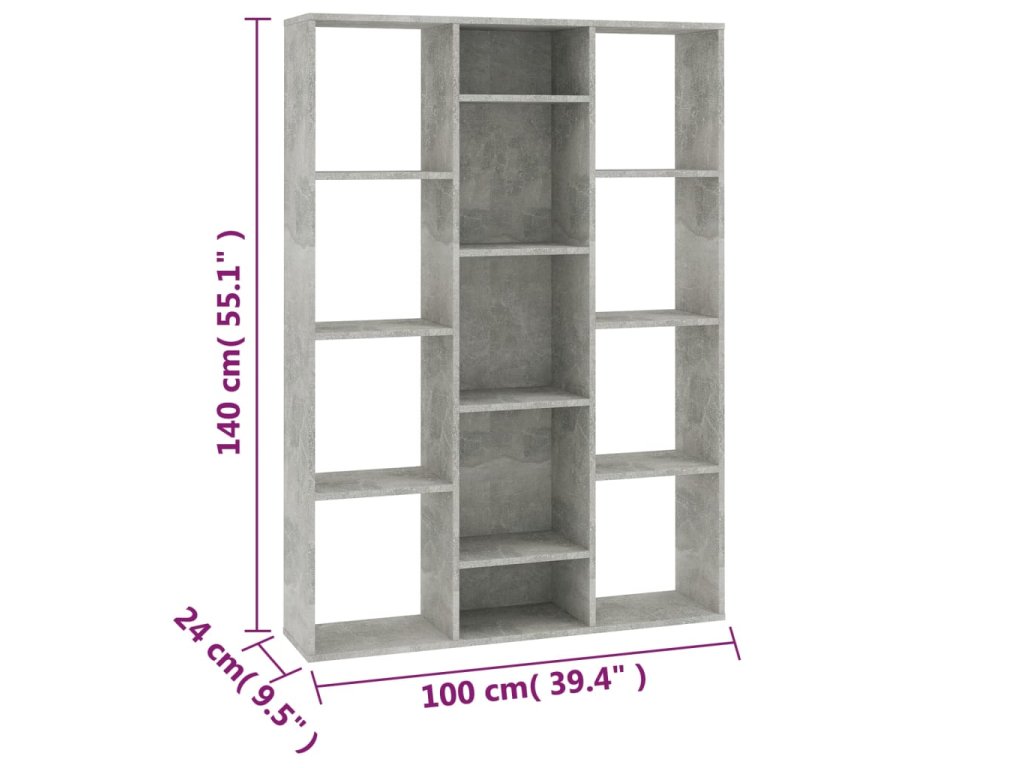 Dělicí stěna / knihovna betonově šedá 100x24x140 cm kompozit