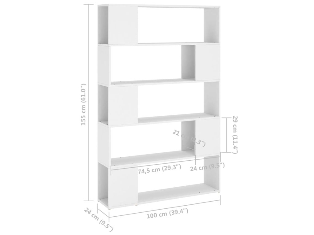 Knihovna / dělicí stěna bílá 100 x 24 x 155 cm kompozitní dřevo