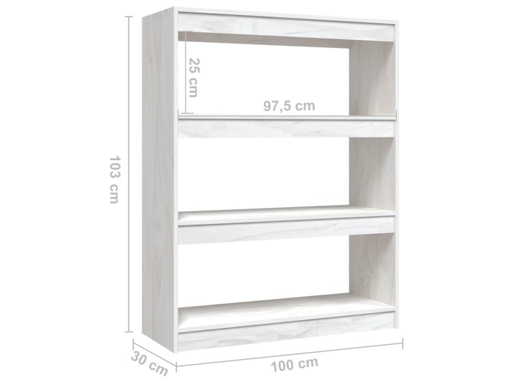 Knihovna / dělicí stěna bílá 100 x 30 x 103 cm masivní borovice