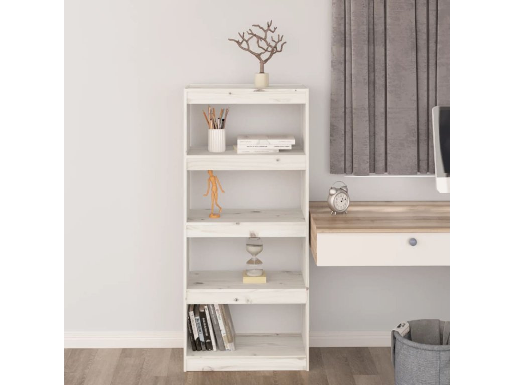 Knihovna / dělicí stěna bílá 60x30x135,5 cm masivní borovice