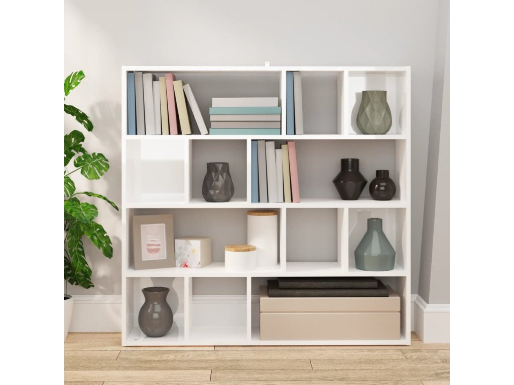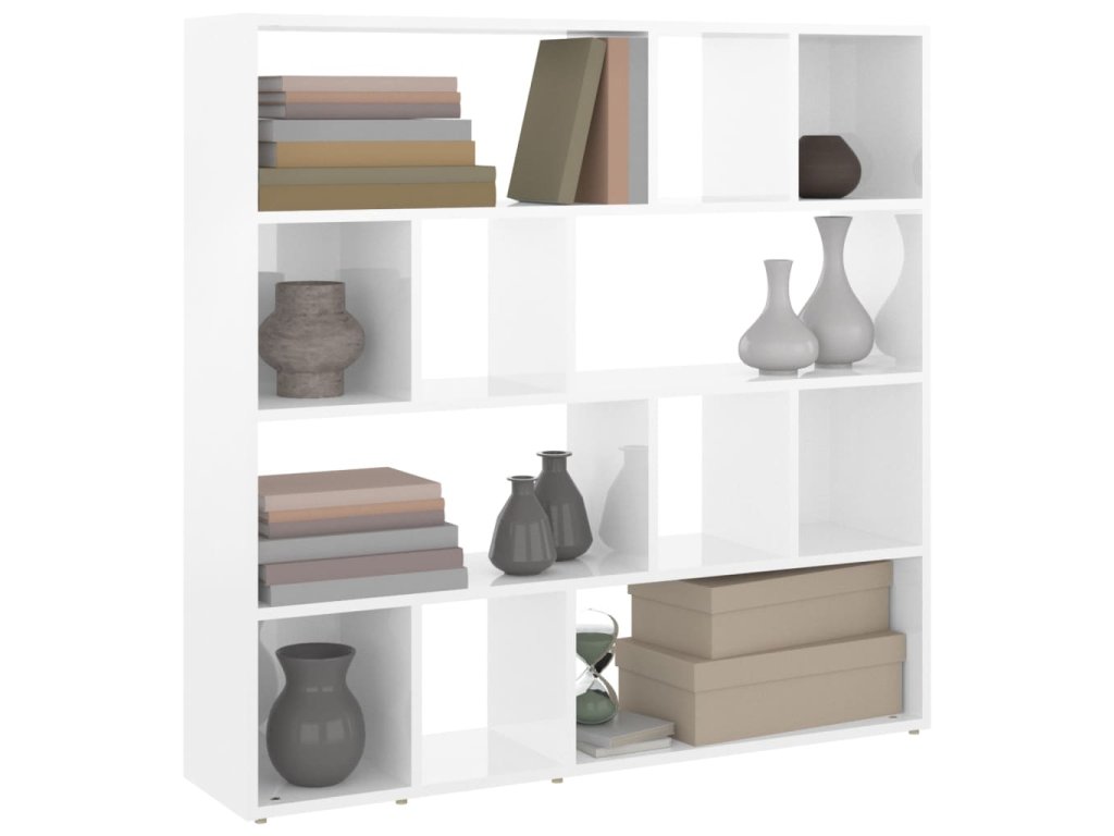 Knihovna / dělicí stěna bílá s vysokým leskem 105 x 24 x 102 cm