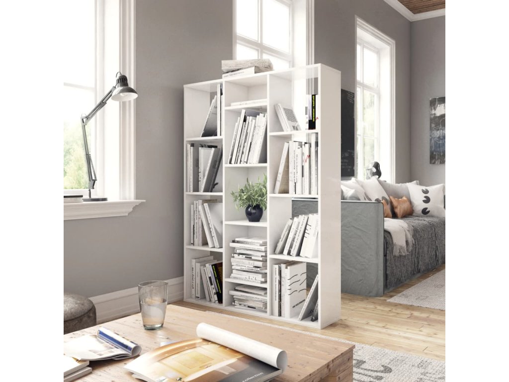Dělicí stěna je vyrobená z prvotřídního kompozitního dřeva, které je zárukou odolnosti, pevnosti a dlouhé životnosti. Zástěna k rozdělení pokoje je designovaná se 13 přihrádkami různých velikostí a nabízí spoustu úložného a výstavního prostoru. Tyto všestranné police můžete v bydlení uplatnit nejen k rozdělení pokoje, ale také jako knihovnu, do které snadno zorganizujete vaše časopisy, knihy, DVD nosiče, multimediální zařízení a různé dekorace na dosah ruky.