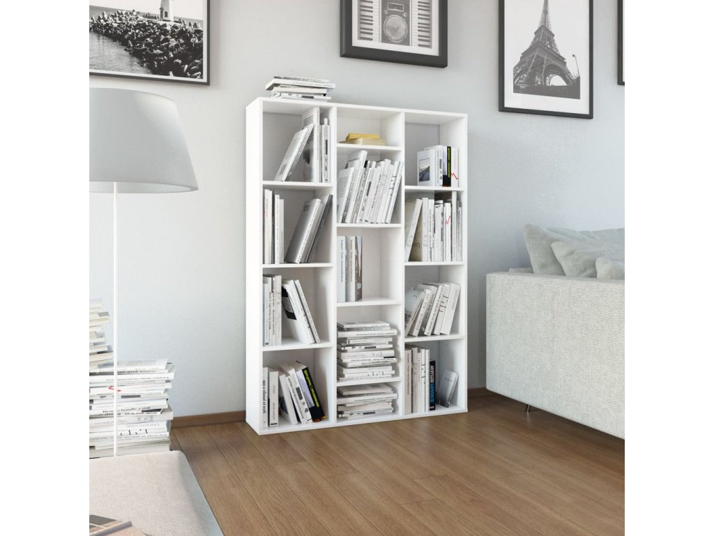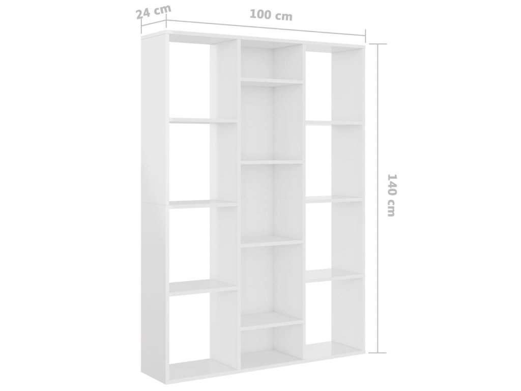 Dělicí stěna / knihovna bílá vysoký lesk 100x24x140 cm kompozit