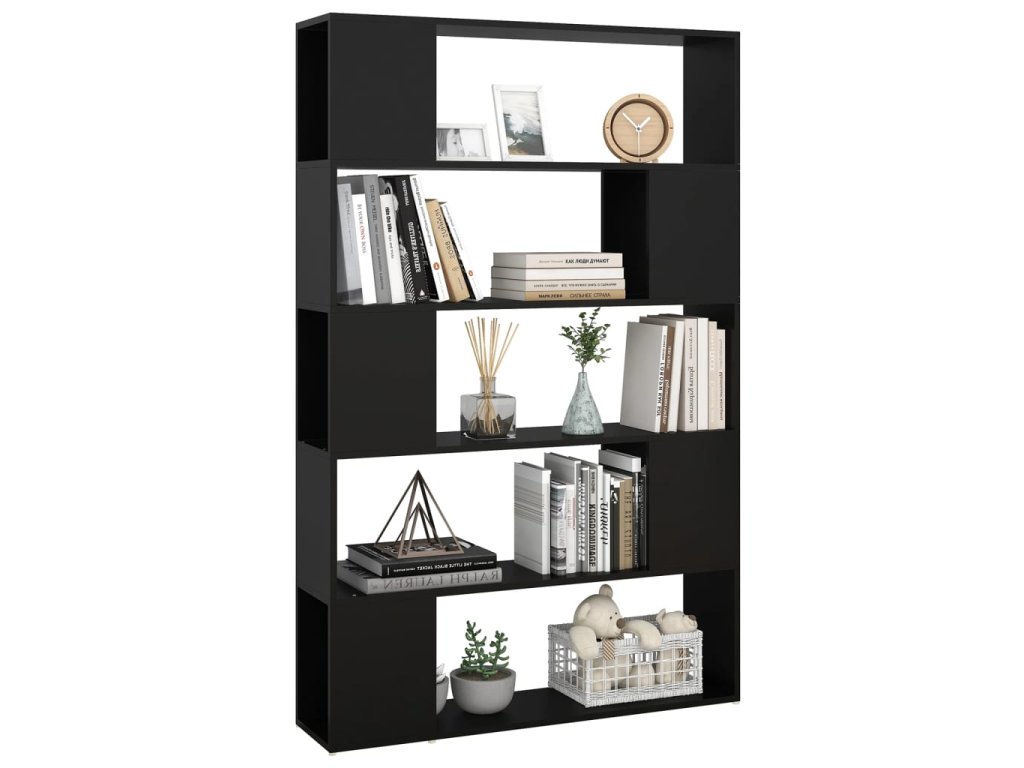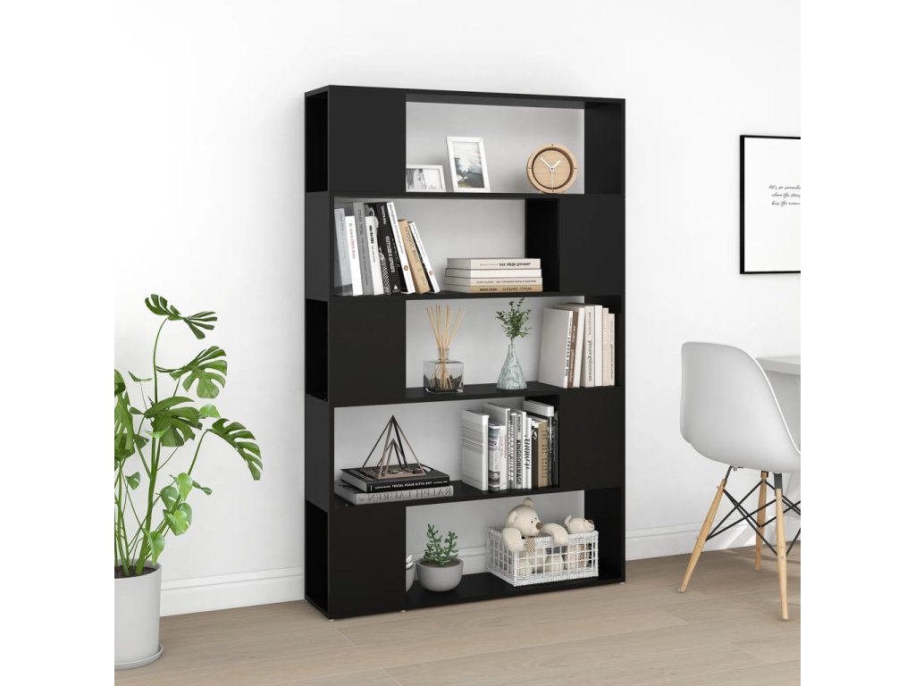 Knihovna / dělicí stěna černá 100x24x155 cm kompozitní dřevo