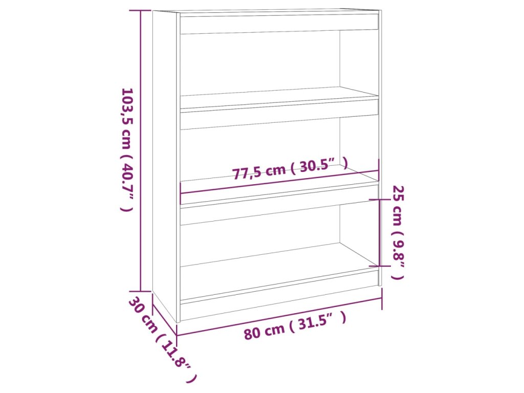 Knihovna / dělicí stěna černá 80x30x103,5 cm masivní borovice