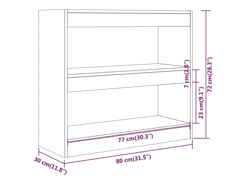 Knihovna / dělicí stěna kouřový dub 80 x 30 x 72 cm