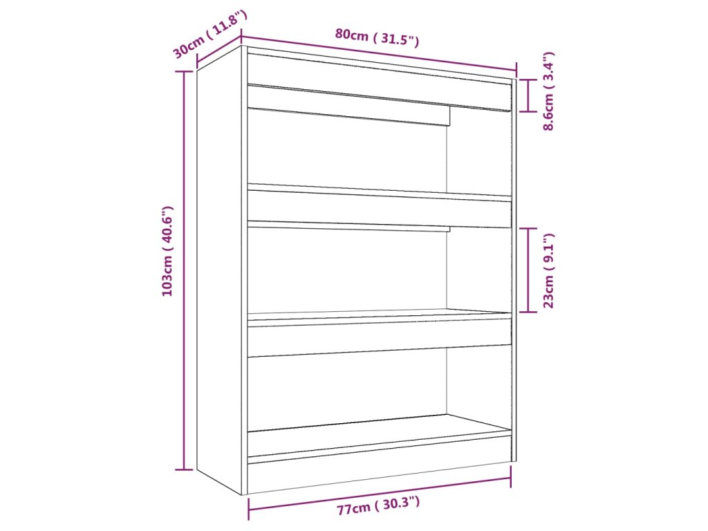 Regál na knihy je robustní a stabilní. Nabízí spoustu místa pro přehledné ukládání časopisů, knih, DVD a multimediálních zařízení, které chcete mít po ruce, ale i pro vystavení různých dekorativních předmětů. Tyto police na knihy s všestranným charakterem lze rovněž využít k rozdělení místnosti, například předsíně, chodby nebo jiného pokoje ve vašem domě. Knihovnu snadno očistíte vlhkým hadříkem.