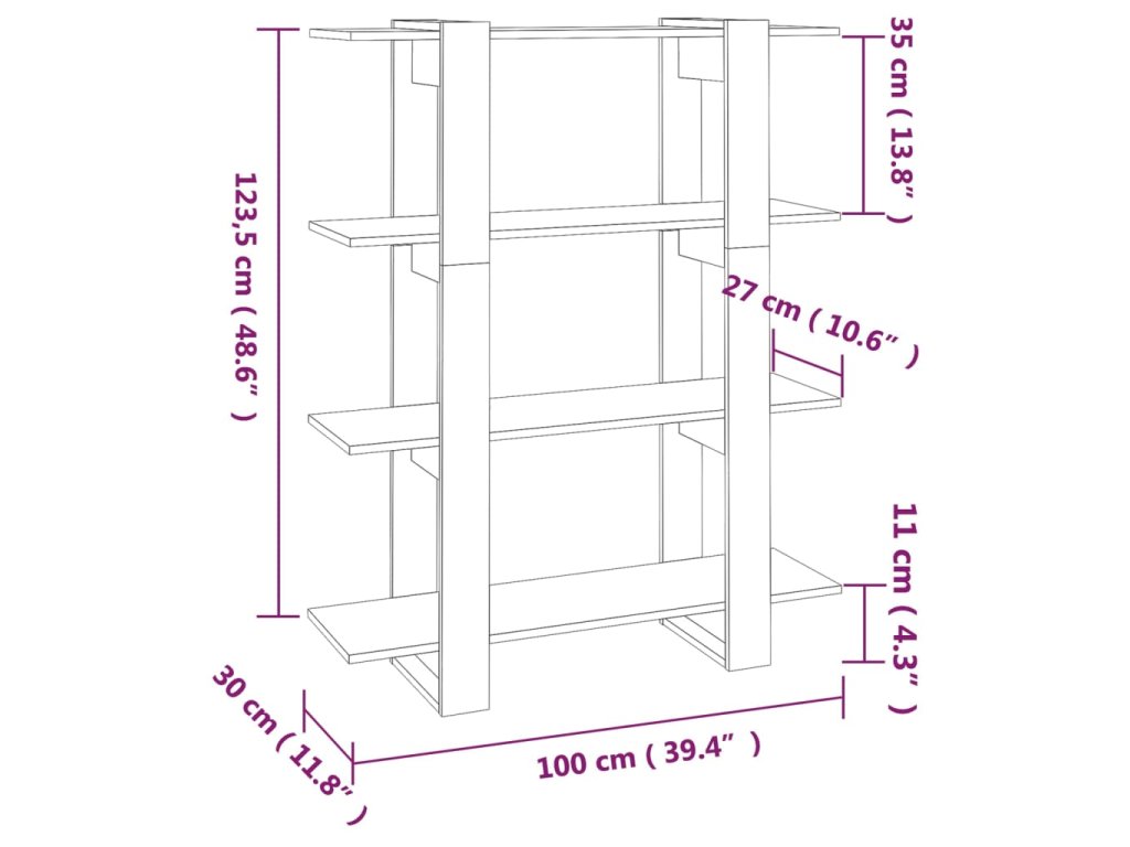 Knihovna / dělicí stěna šedá sonoma 100 x 30 x 123,5 cm