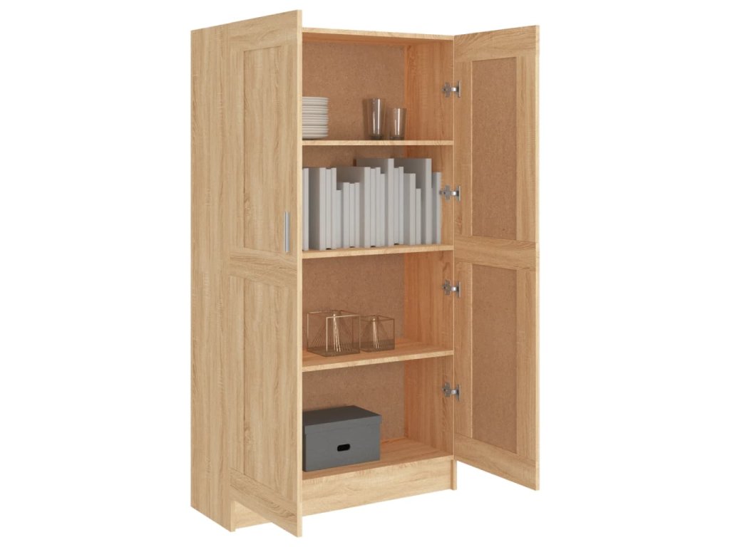 Skříň je vyrobená z kvalitního kompozitního dřeva, je proto odolná a má dlouhou životnost. Čtyři velké prostorné přihrádky za 2 dvířky nabízí spoustu místa pro přehledné ukládání časopisů, knih, DVD a multimediálních zařízení tak, abyste je měli neustále po ruce. Rovněž si v nich můžete vystavit i nejrůznější dekorativní předměty. Police na knihy mají všestranný charakter, poslouží vám tedy jako dokonalé úložné řešení v různých místnostech. Knihovnu navíc snadno očistíte vlhkým hadříkem.
