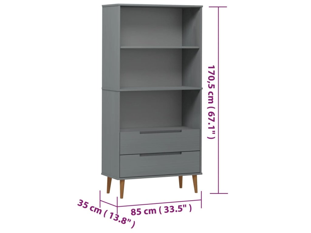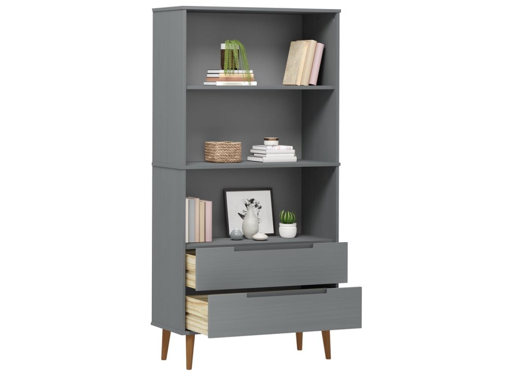 Knihovna MOLDE šedá 85 x 35 x 170,5 cm masivní borové dřevo