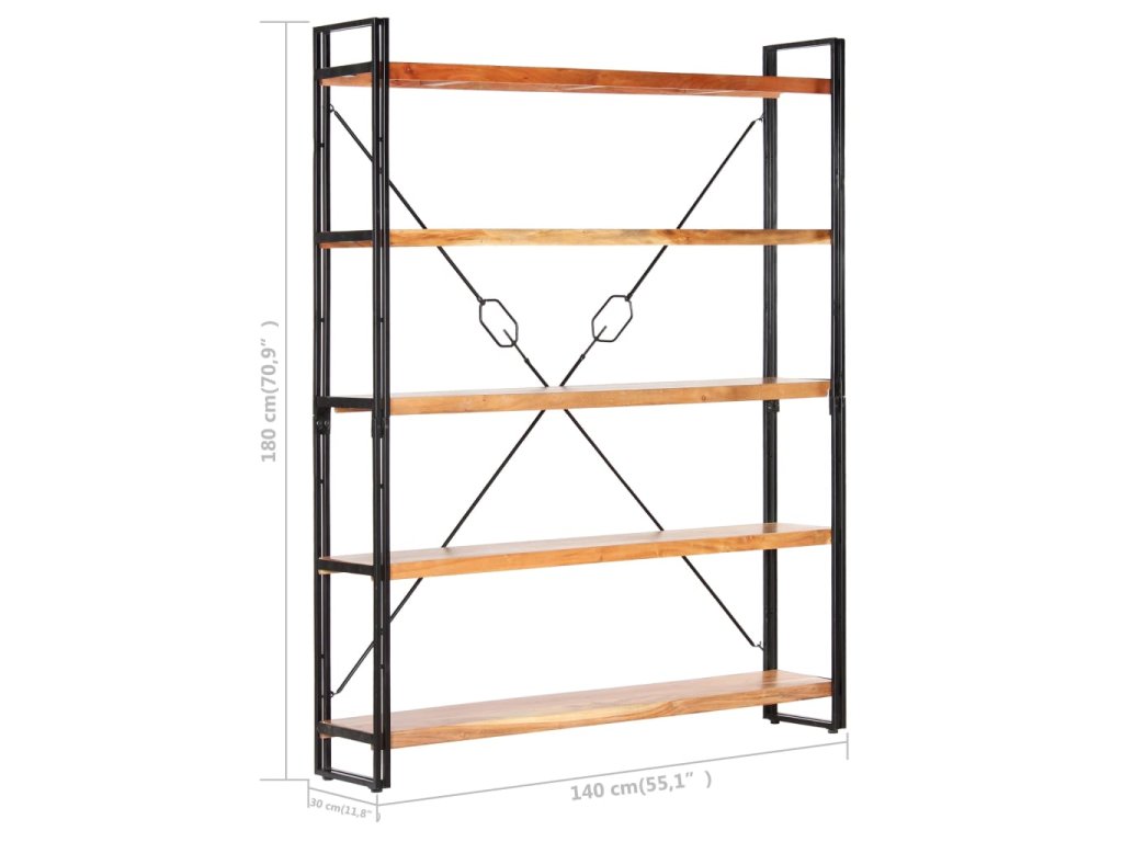 Knihovna s 5 policemi 140 x 30 x 180 cm masivní akáciové dřevo