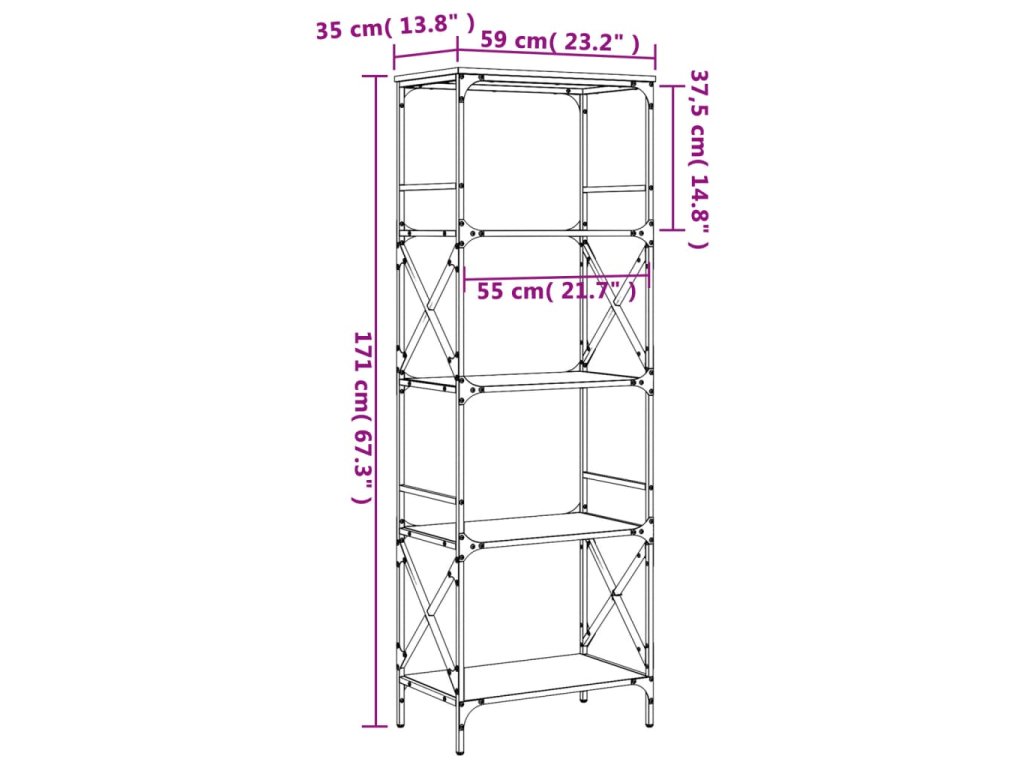 Knihovna s 5 policemi černá 59 x 35 x 171 cm kompozitní dřevo