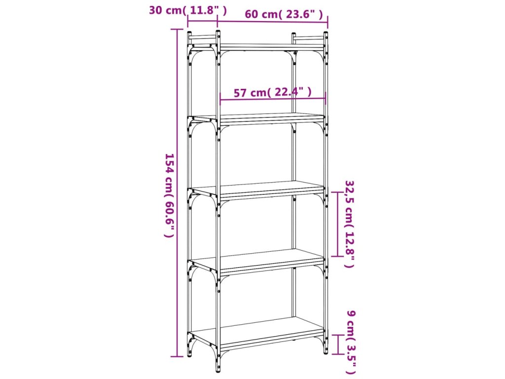 Knihovna s 5 policemi černá 60 x 30 x 154 cm kompozitní dřevo