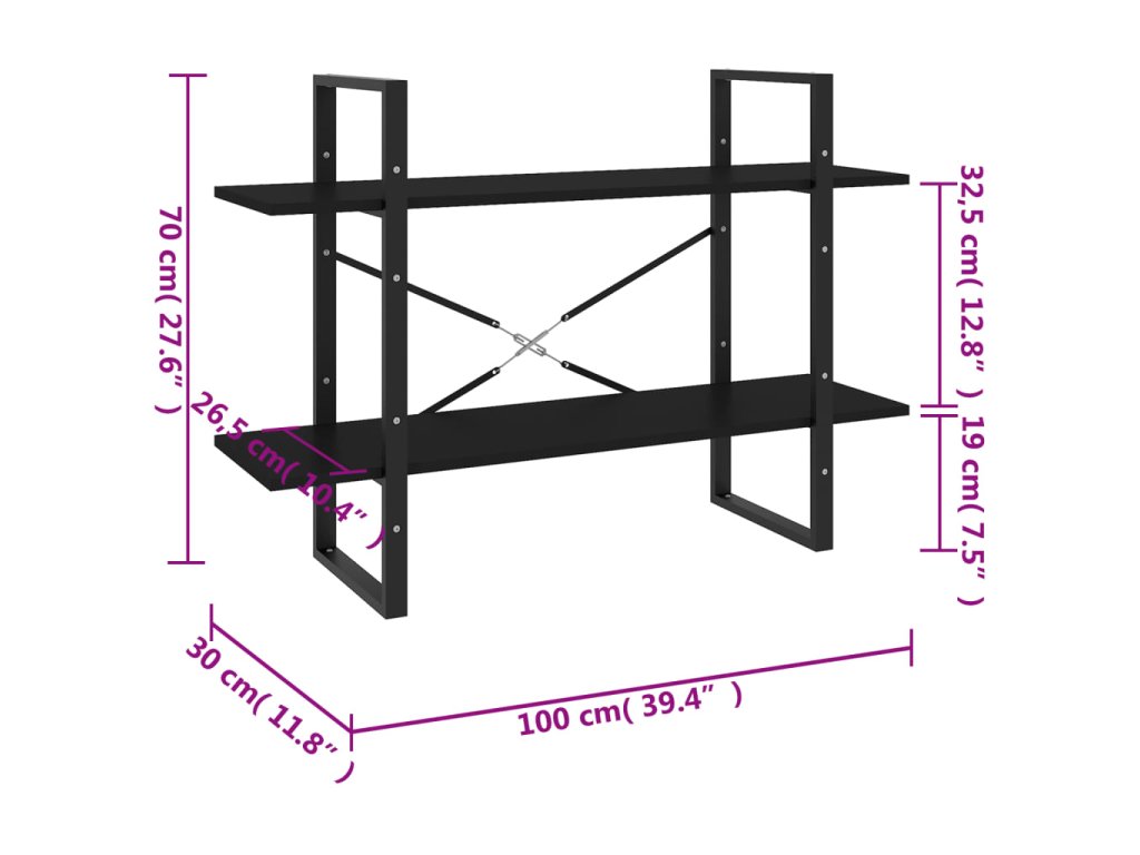 Knihovna se 2 policemi černá 100 x 30 x 70 cm kompozitní dřevo