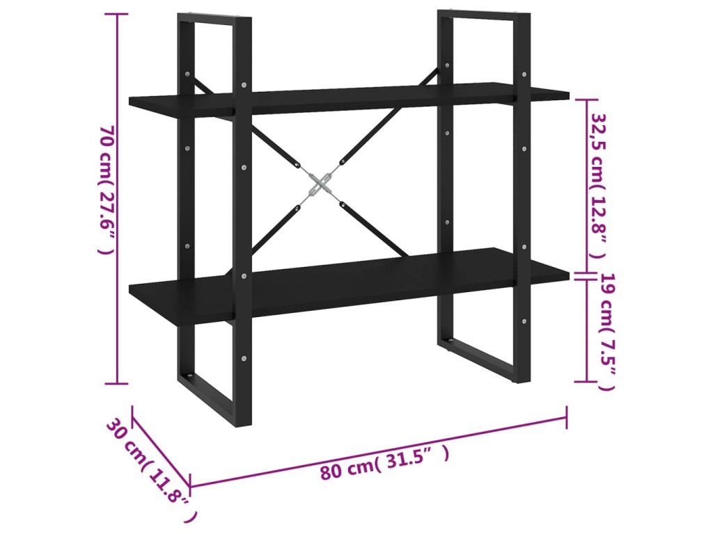 Knihovna se 2 policemi černá 80 x 30 x 70 cm kompozitní dřevo 806448