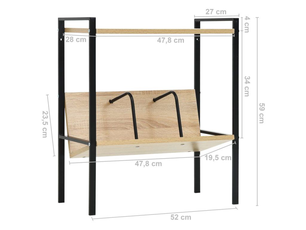 Knihovna se 2 policemi černá a dub 52x28x59 cm kompozitní dřevo 288231