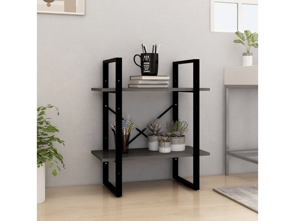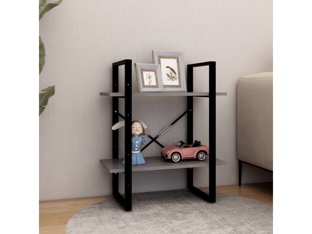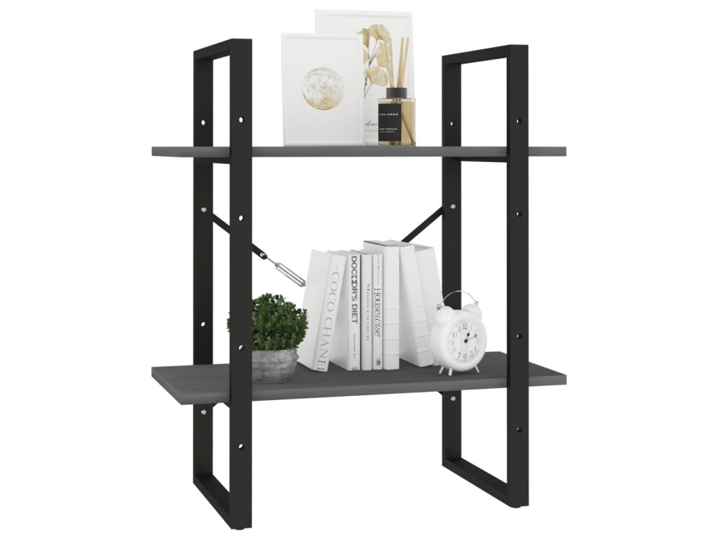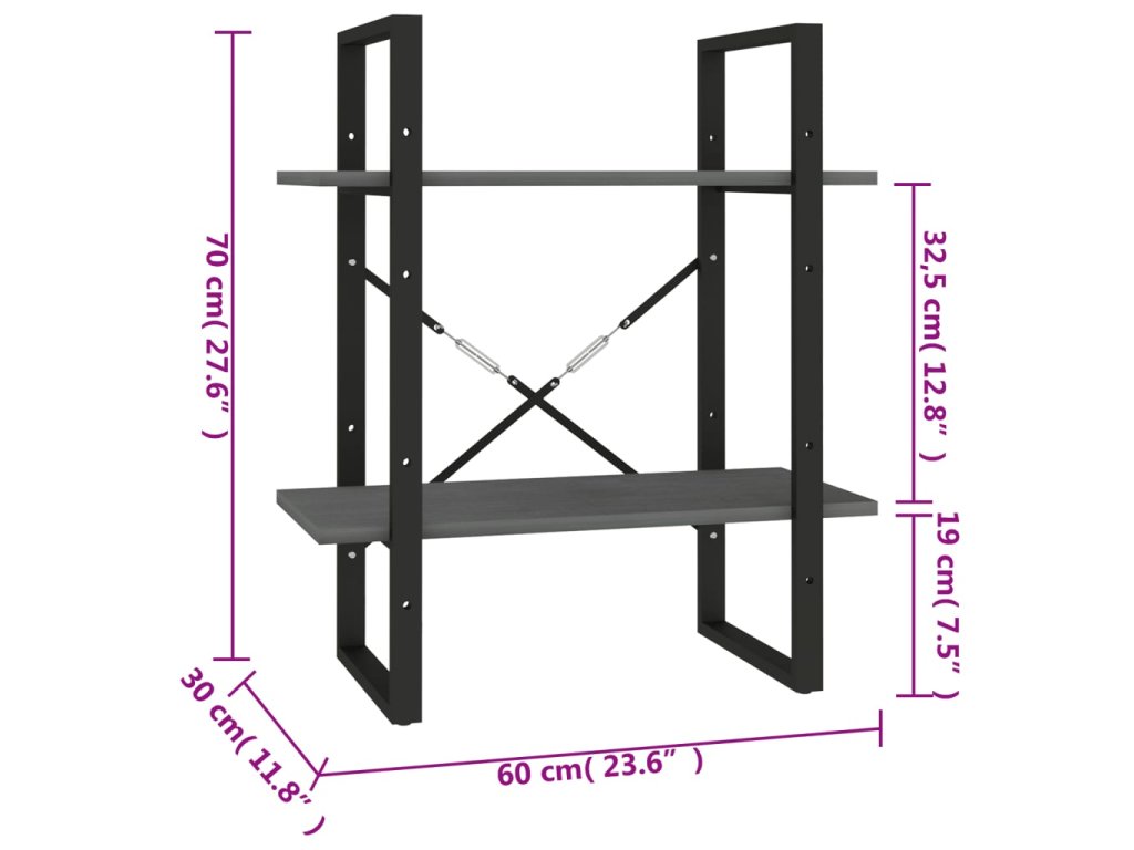 Knihovna se 2 policemi šedá 60 x 30 x 70 cm masivní borovice