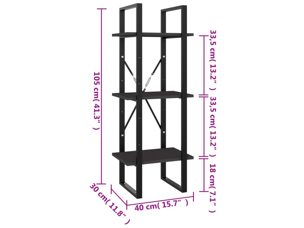 Knihovna se 3 policemi šedá 40 x 30 x 105 cm kompozitní dřevo