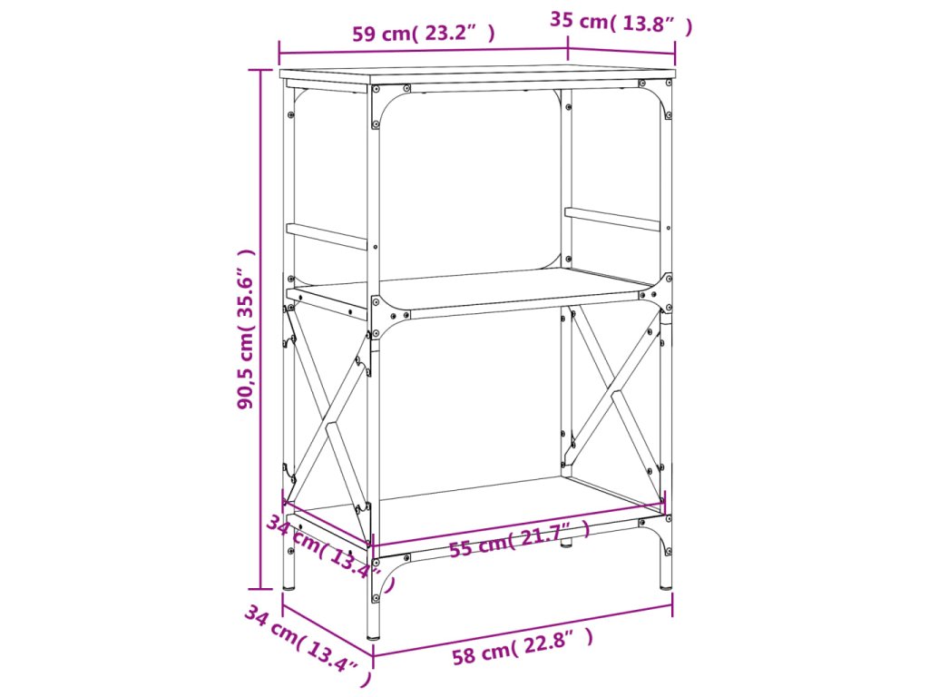 Knihovna se 3 policemi šedá sonoma 59 x 35 x 90,5 cm kompozit