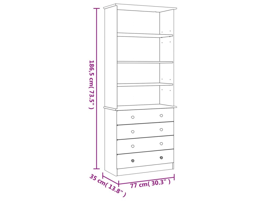 Knihovna se zásuvkami ALTA bílá 77x35x186,5 cm masivní borovice