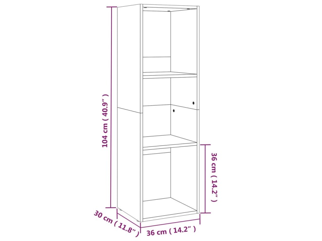 Knihovna je vyrobena z dřevotřísky, která zajišťuje její robustnost, odolnost a dlouhou životnost. Tři přihrádky poskytují spoustu prostoru pro přehledné ukládání vašich časopisů, knih, DVD a multimédiálních zařízení, které chcete mít po ruce. Tyto police na knihy, které díky jejich všestrannému charakteru můžete rovněž umístit horizontálně a využít je jako TV skříňku, jsou ideálním doplňkem do vašeho bydlení.