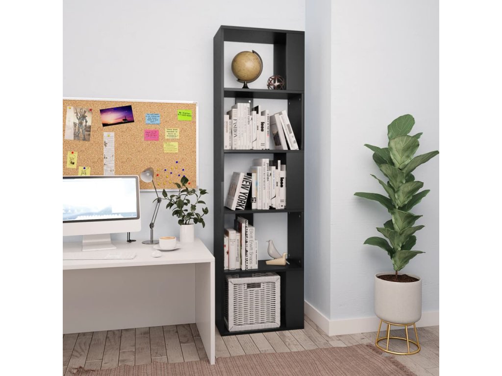 Knihovna / dělicí stěna černá 45 x 24 x 159 cm kompozitní dřevo