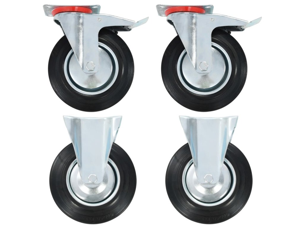 Kolečka jsou vyrobena z gumy, která je známá pro svou schopnost pohlcovat nárazy a vibrace. Ať už tedy kolečka namontujete na cokoliv, budete to moci přesouvat hladce a v tichosti. Jejich hladký povrch navíc ochrání vaši podlahu před poškrábáním. Zinkem potažený ocelový rám je odolný proti rzi, dodává kolečkům na odolnosti a prodlužuje jejich životnost. Dvě z těchto otočných koleček jsou vybavena dvojitou brzdou pro flexibilnější ovládání. Každé kolečko má maximální nosnost až 180 kg.