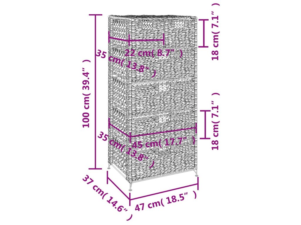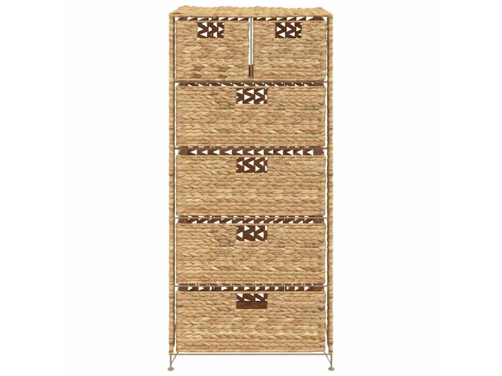 Má 6 zásuvek, které vám poskytnou dostatek prostoru pro nejrůznější drobnosti. Komoda se skládá z kovového rámu a vodního hyacintu, díky čemuž je robustní a odolná. Atraktivní proutěný styl zvýrazňuje rustikální kouzlo komody.