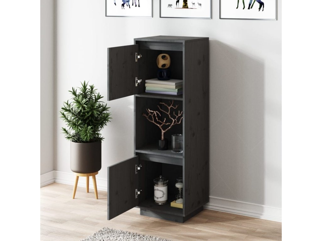 Komoda šedá 38 x 35 x 117 cm masivní borové dřevo