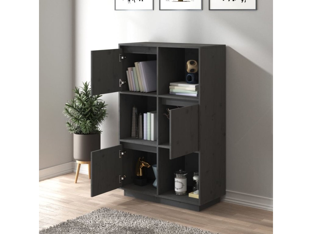 Komoda šedá 74 x 35 x 117 cm masivní borové dřevo