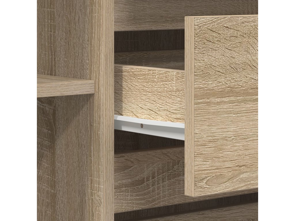 - Vysoce kvalitní materiál: Tento bufet je z kompozitního dřeva a má stylový moderní povrch. Odolný povrch dobře odolává každodennímu opotřebení, což z něj dělá skvělý doplněk do tvého domova.