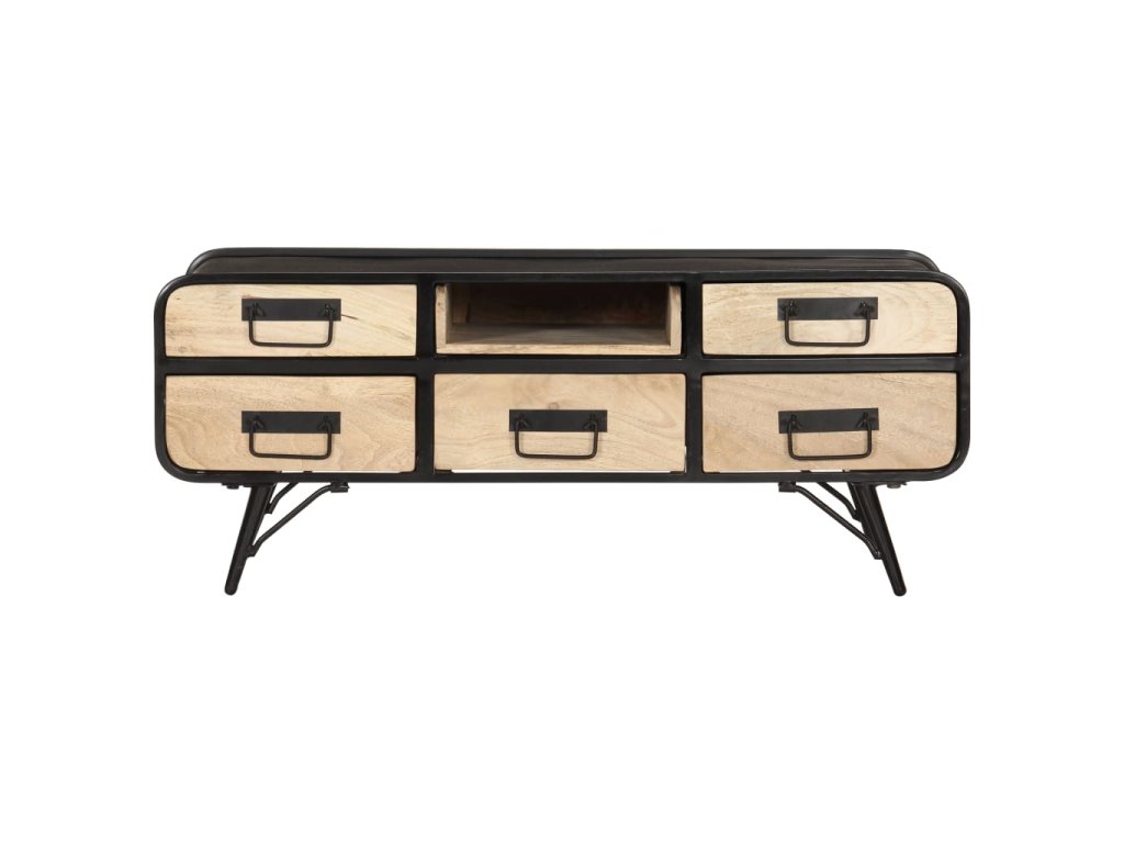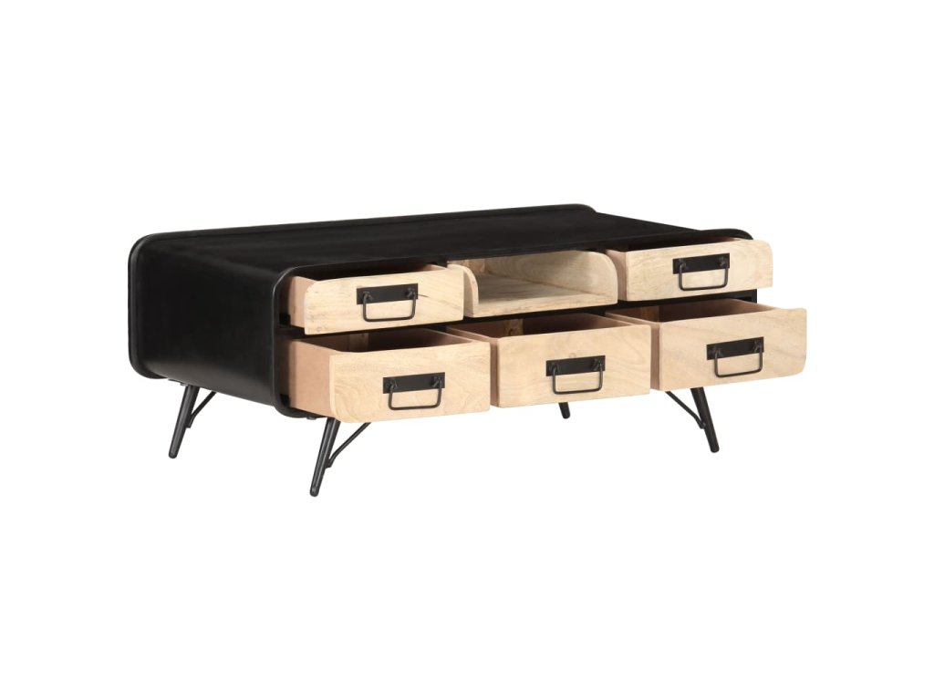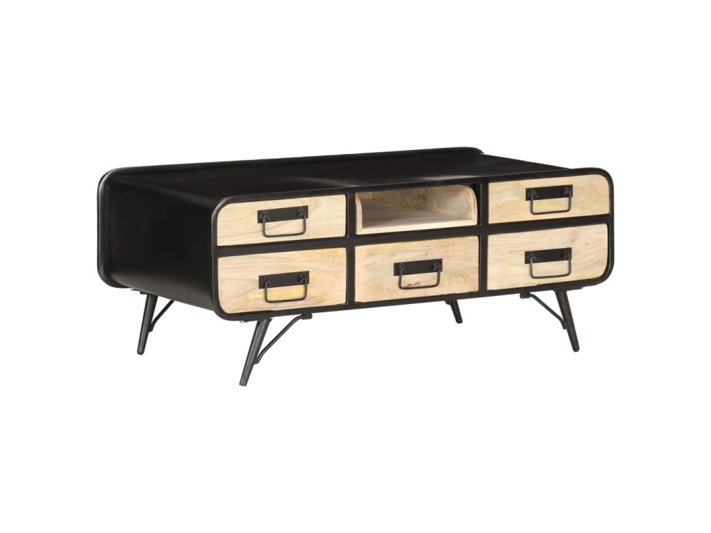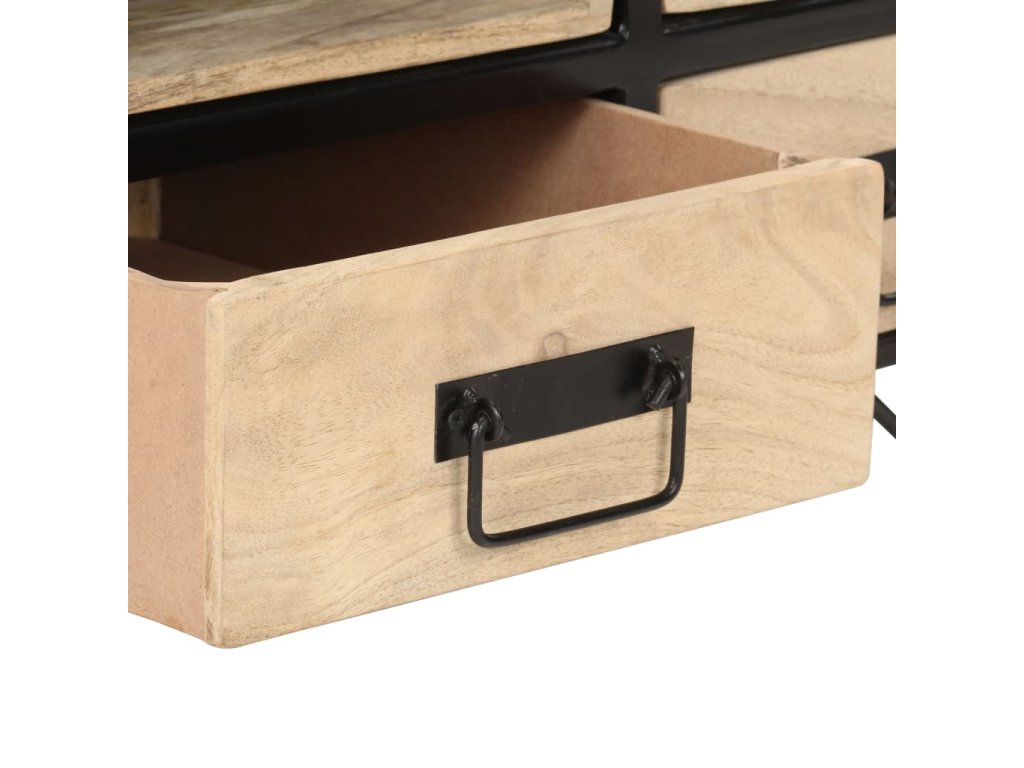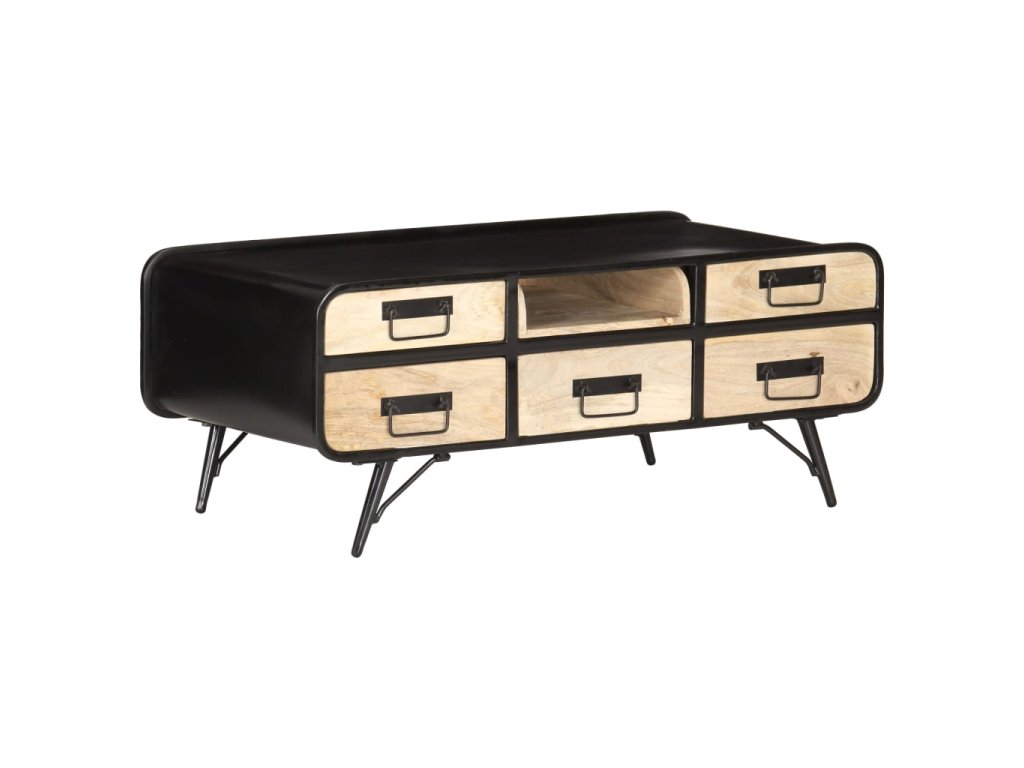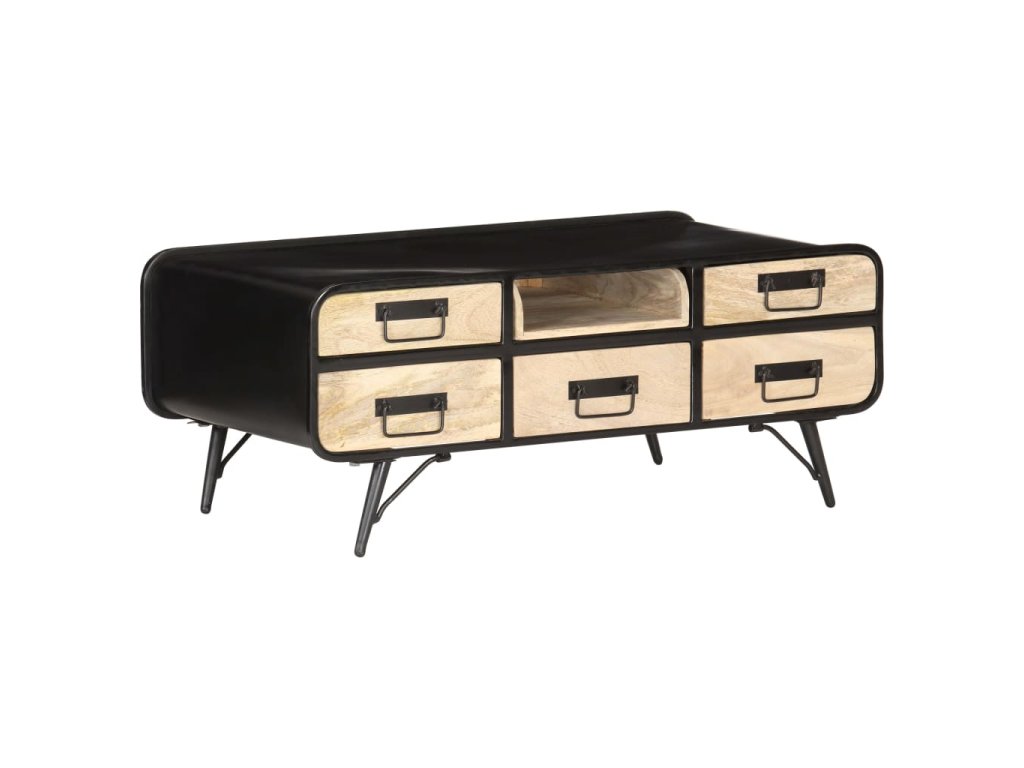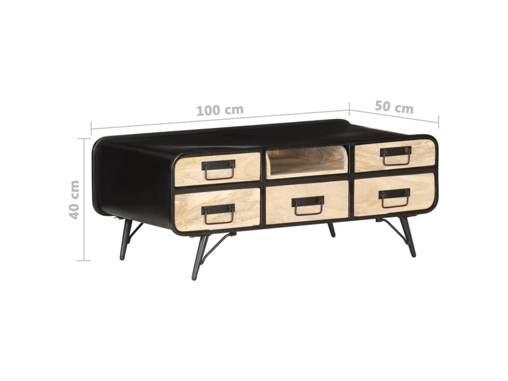 Stolek k pohovce je ručně vyrobený z práškově lakovaného železa a masivního mangovníkového dřeva, takže je robustní a stabilní. Řemeslné zpracování a krásná kresba dřeva dává každému kusu nábytku jeho jedinečný a od všech ostatních mírně odlišný charakter. Stolek do obývacího pokoje má také dostatek úložného prostoru, kde můžete udržovat důležité položky uspořádané a na dosah ruky. Sestavení stolku do obývacího pokoje je snadné.