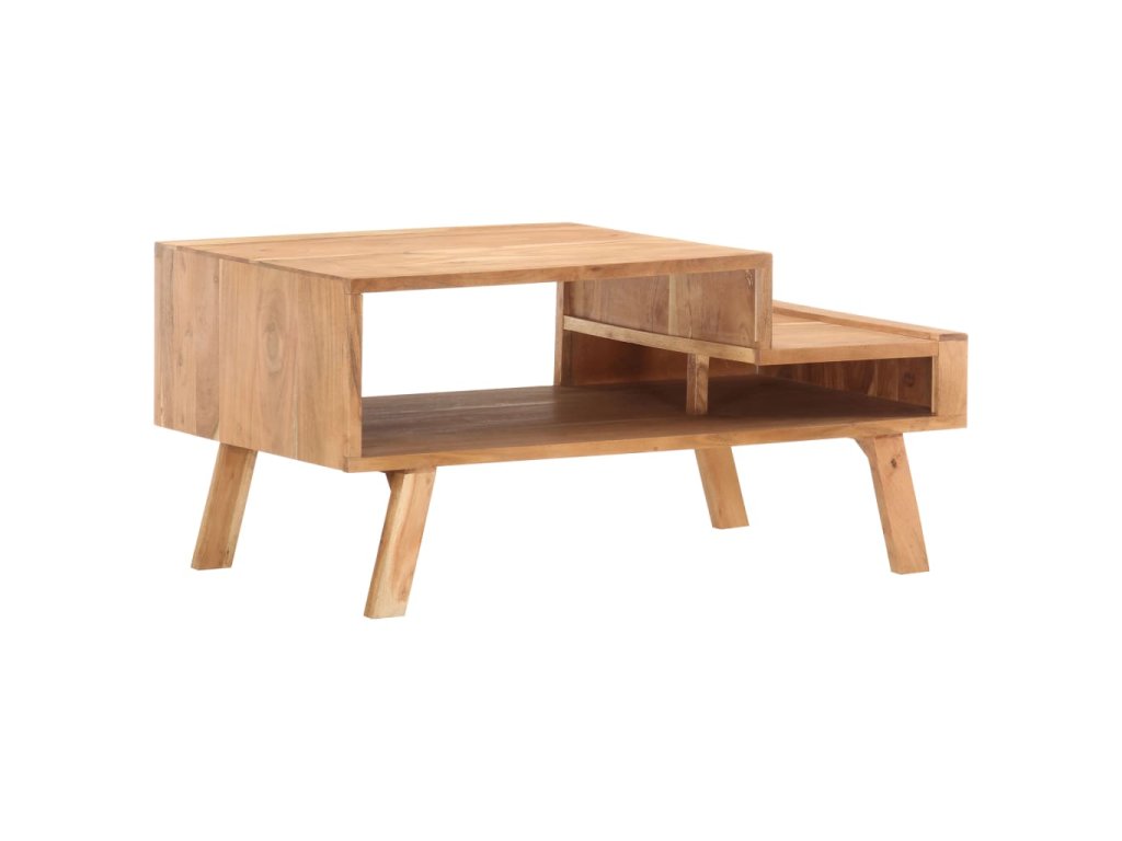 Stolek k pohovce je ručně vyrobený z masivního akáciového dřeva, takže je robustní a stabilní. Masivní stolní deska je bezpečný povrch, na který můžete umístit nápoje, vázy, ovocné mísy nebo dekorace. Tento praktický konferenční stolek má také úložný prostor, který bude perfektní pro vaše multimediální spotřebiče, knihy, časopisy nebo malé předměty, které chcete mít na dosah ruky. Stolek proto usnadňuje udržování pořádku ve vašem obývacím pokoji. Řemeslné zpracování a krásná dřevěná kresba dává každému kusu nábytku jeho jedinečný a od všech ostatních mírně odlišný charakter. Tento stolek do obývací pokoje lze snadno sestavit.