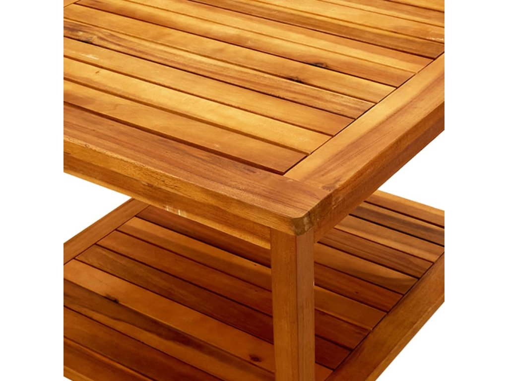 Stolek je vyrobený z masivního akáciového dřeva s olejovou povrchovou úpravou, výborně proto odolává klimatickým vlivům a má dlouhou životnost. Každá fáze výrobního procesu je prováděná s mimořádnou péčí, ať už se jedná o leštění nebo lakování. Robustní stolní deska s laťkovým designem vám nabízí prostor pro servírování občerstvení či košů s ovocem, vystavení dekorací a mnoho dalšího. Akcentový stolek je také vybaven policí ve spodní části, která poskytuje další prostor pro přehledné uložení nezbytností, které budete mít po ruce.