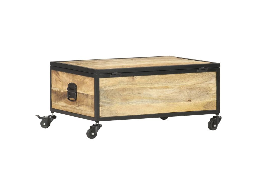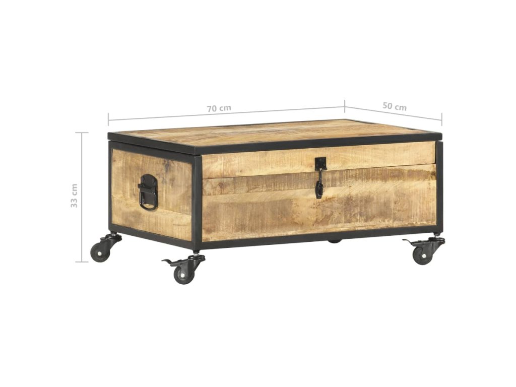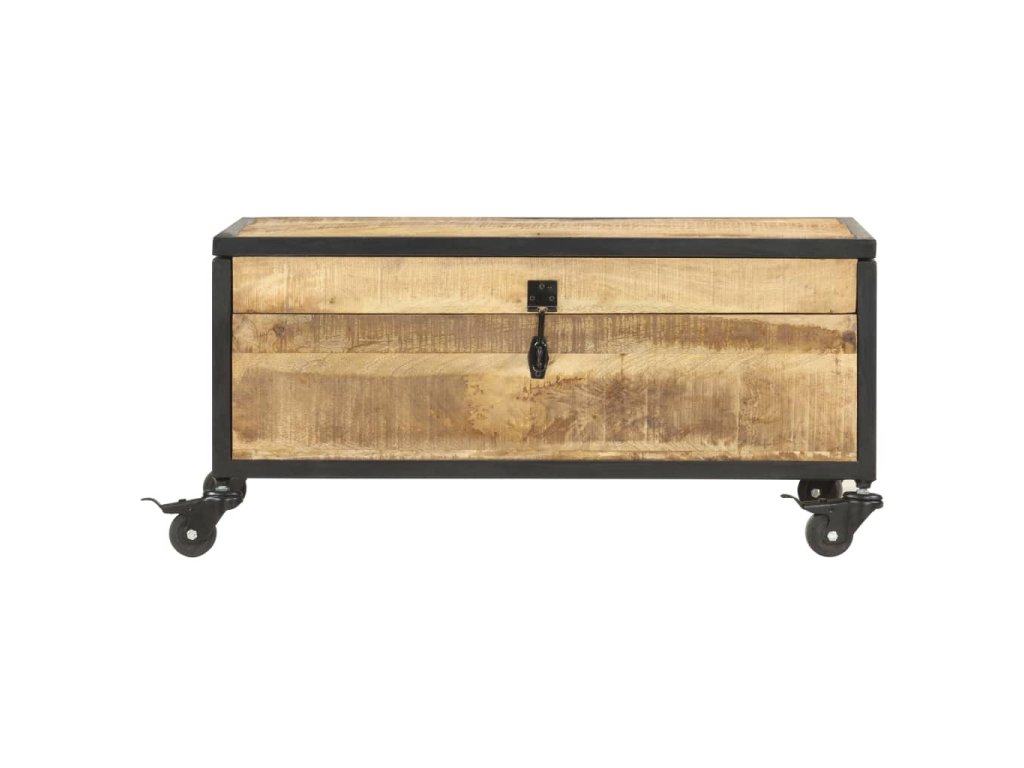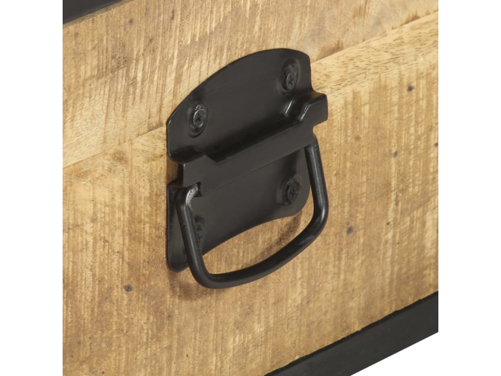 Stolek má vysoce odolnou konstrukci a je vyrobený z mangovníkového dřeva, takže je mimořádně bytelný a odolný. Mangovník je husté robustní tvrdé dřevo, které má na povrchu krásné hnědé a zlaté pruhy a kontury. Každá fáze výrobního procesu se provádí s mimořádnou péčí, ať už se jedná o leštění, natírání nebo lakování. Za výklopnými dvířky se skrývá úložný prostor, který je jako dělaný k přehlednému uspořádání vašich multimediálních zařízení, knížek, časopisů a různých dalších maličkostí, jež chcete mít na dosah ruky. Můžete jej také použít jako odkládací stolek, úložnou truhlu apod.