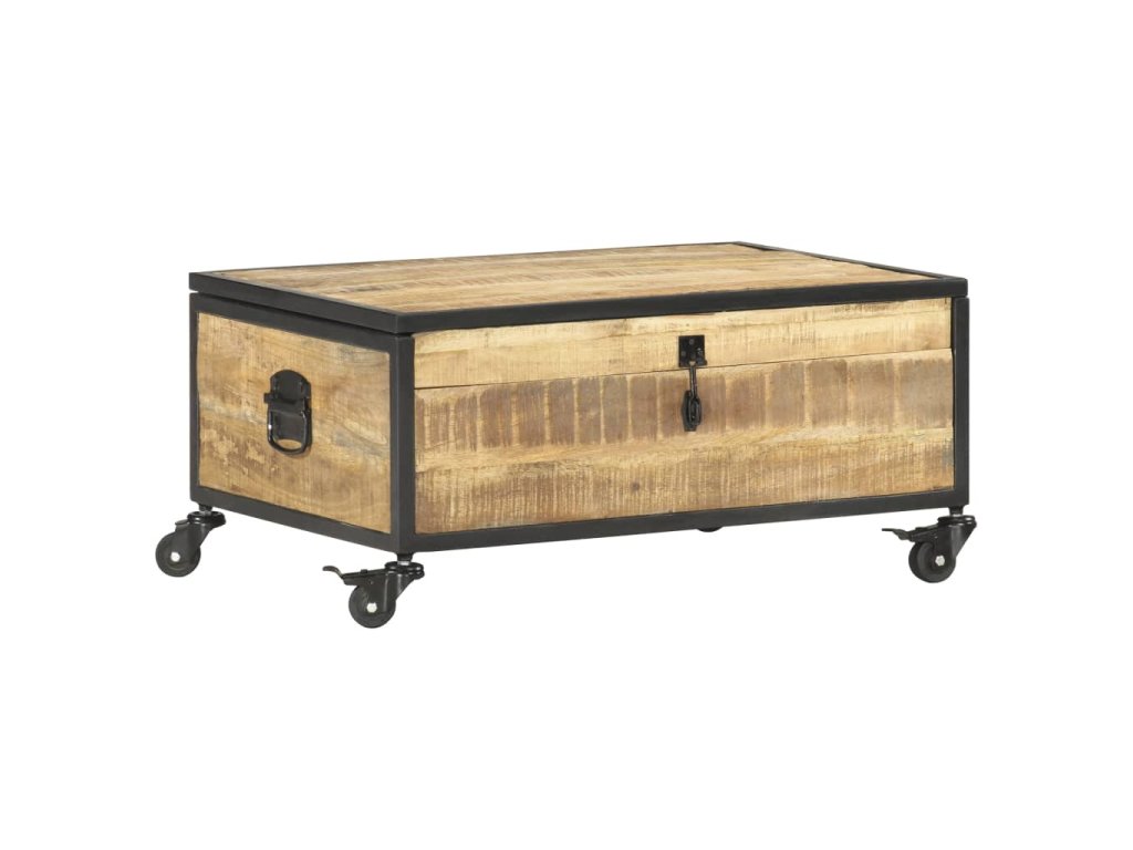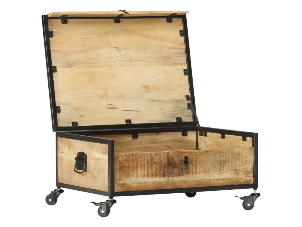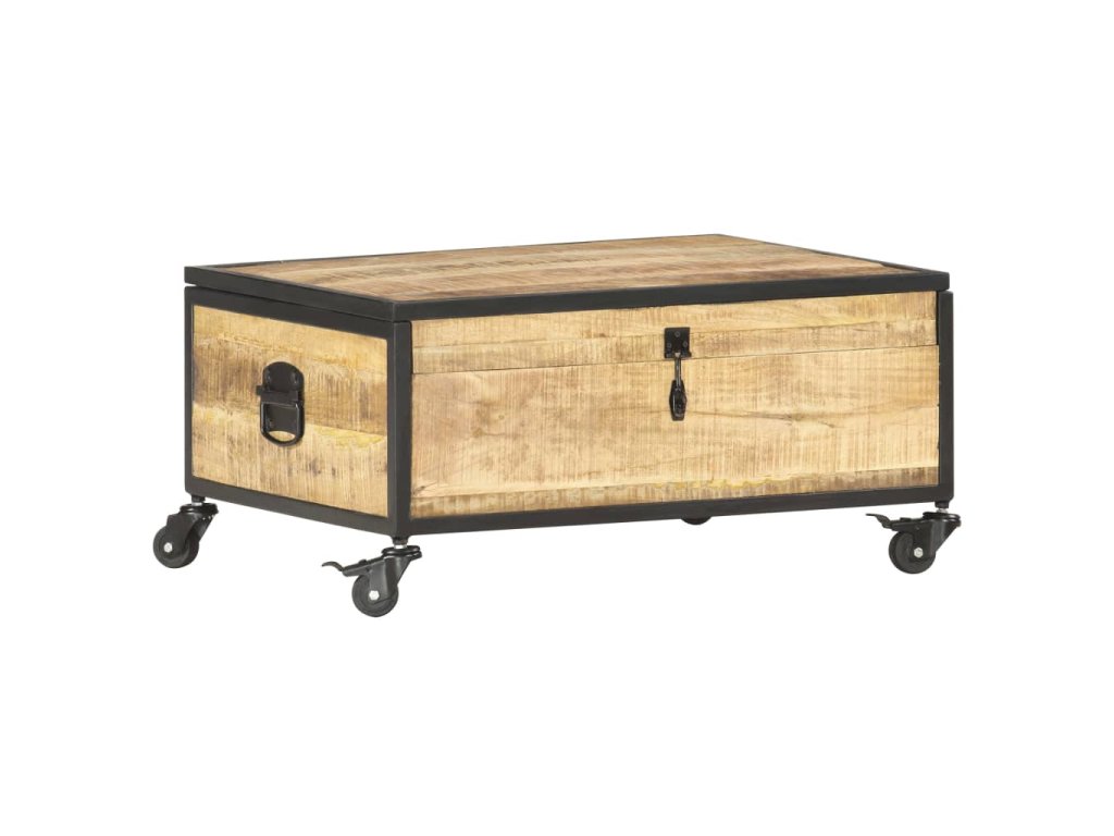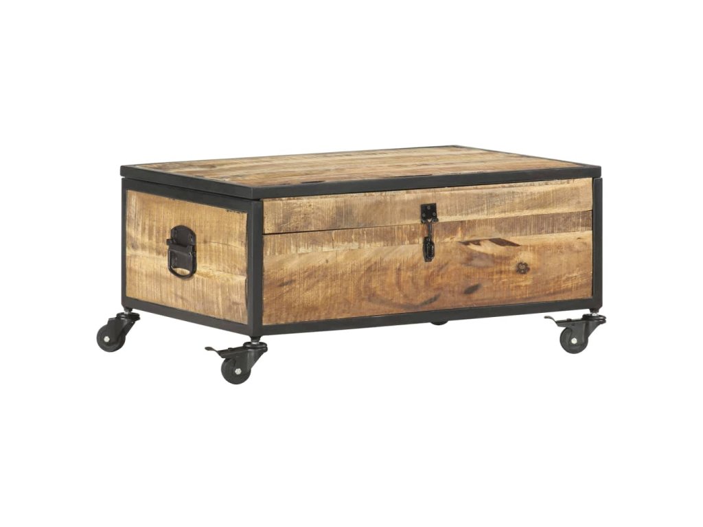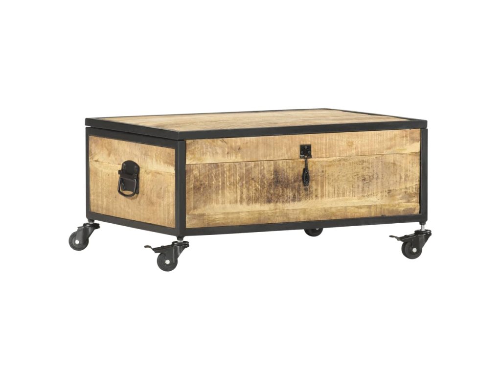 Stolek má vysoce odolnou konstrukci a je vyrobený z mangovníkového dřeva, takže je mimořádně bytelný a odolný. Mangovník je husté robustní tvrdé dřevo, které má na povrchu krásné hnědé a zlaté pruhy a kontury. Každá fáze výrobního procesu se provádí s mimořádnou péčí, ať už se jedná o leštění, natírání nebo lakování. Za výklopnými dvířky se skrývá úložný prostor, který je jako dělaný k přehlednému uspořádání vašich multimediálních zařízení, knížek, časopisů a různých dalších maličkostí, jež chcete mít na dosah ruky. Můžete jej také použít jako odkládací stolek, úložnou truhlu apod.