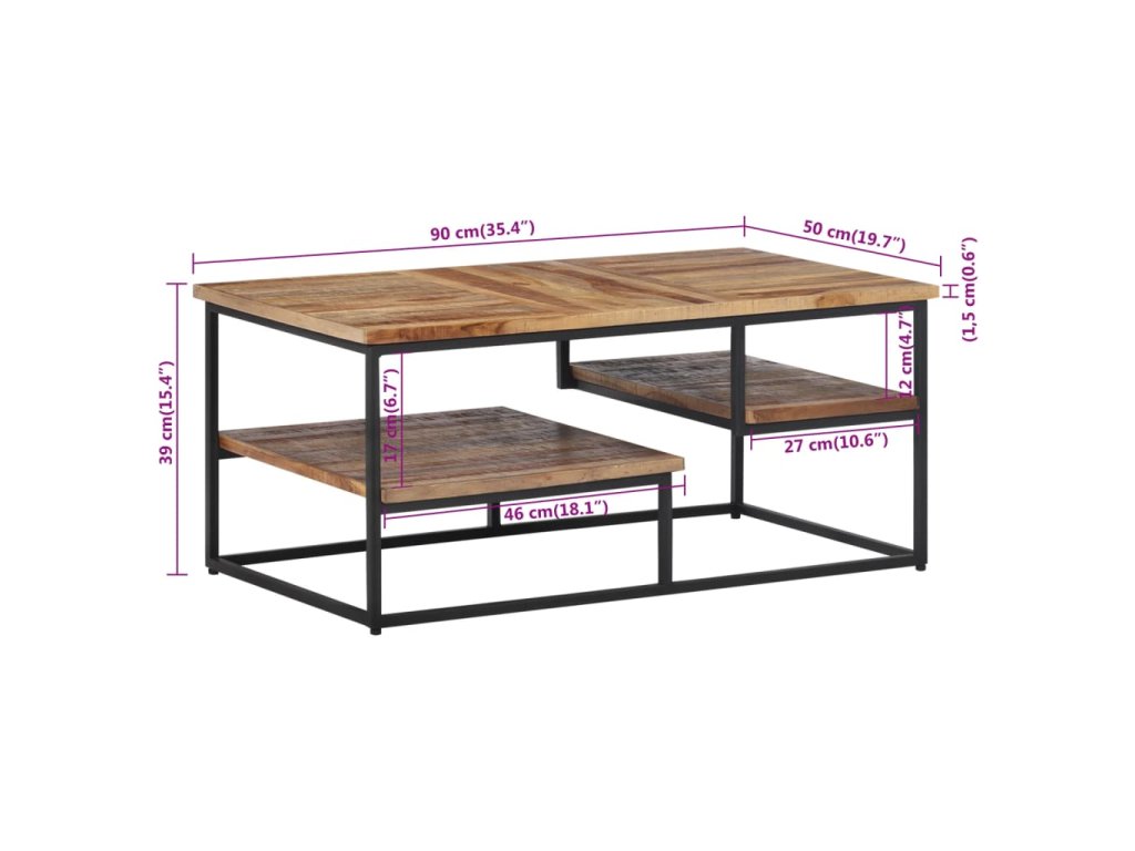 - Robustní horní deska: Dřevěná deska stolku k pohovce se skvěle hodí pro servírování nápojů a občerstvení nebo pro vystavení různých dekorativních předmětů.