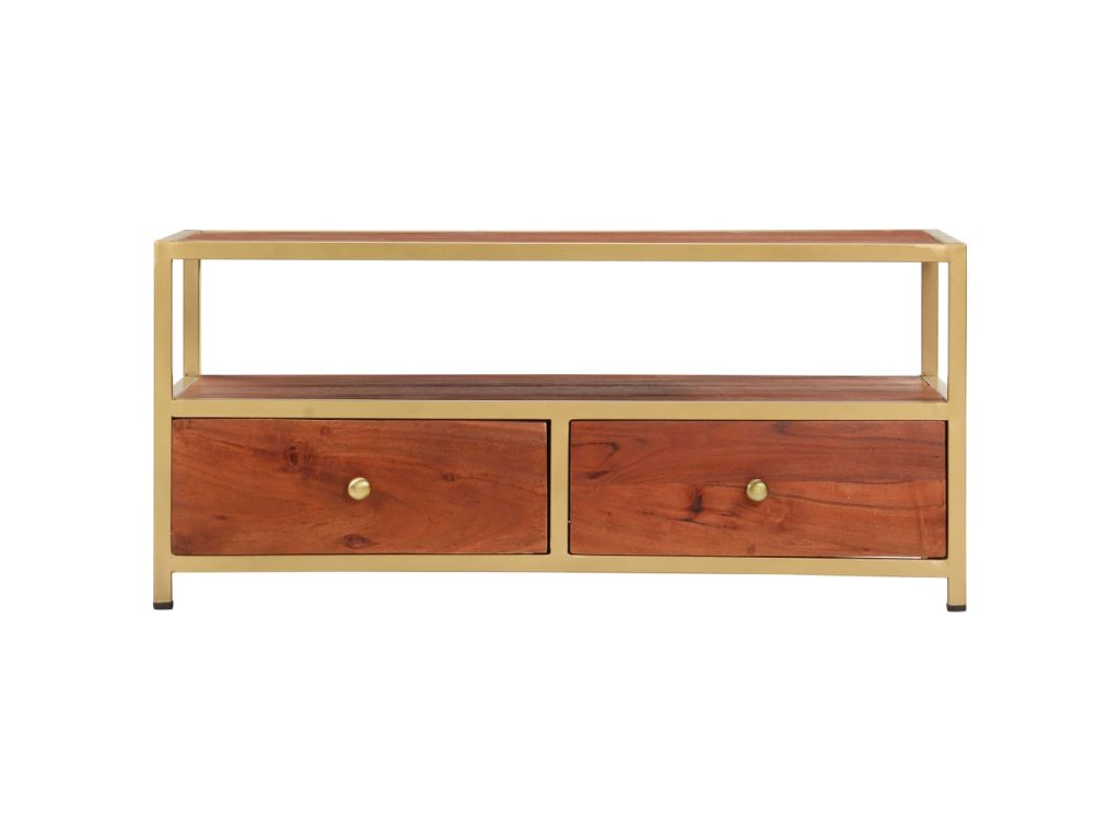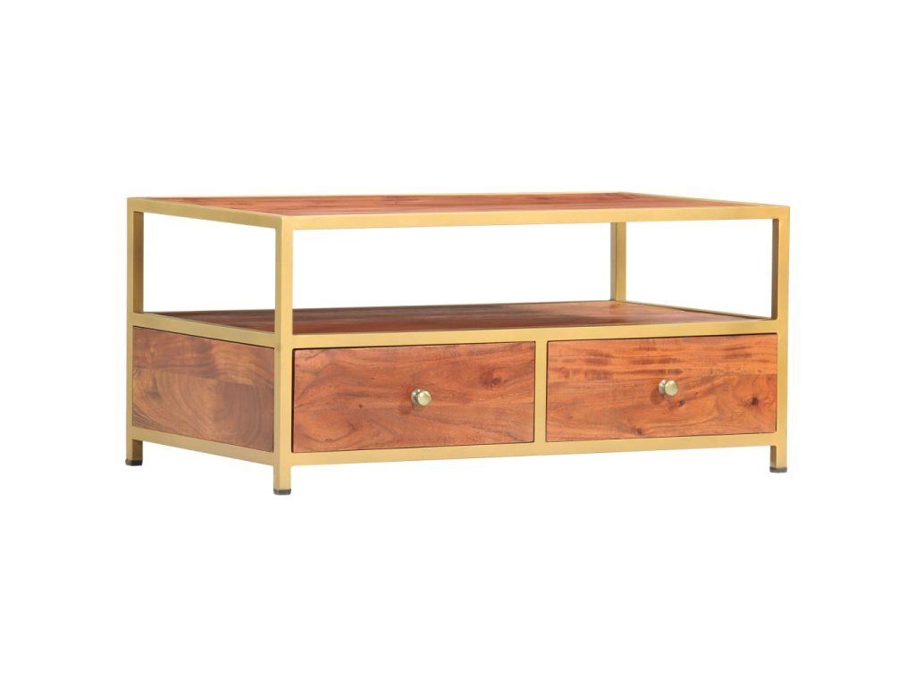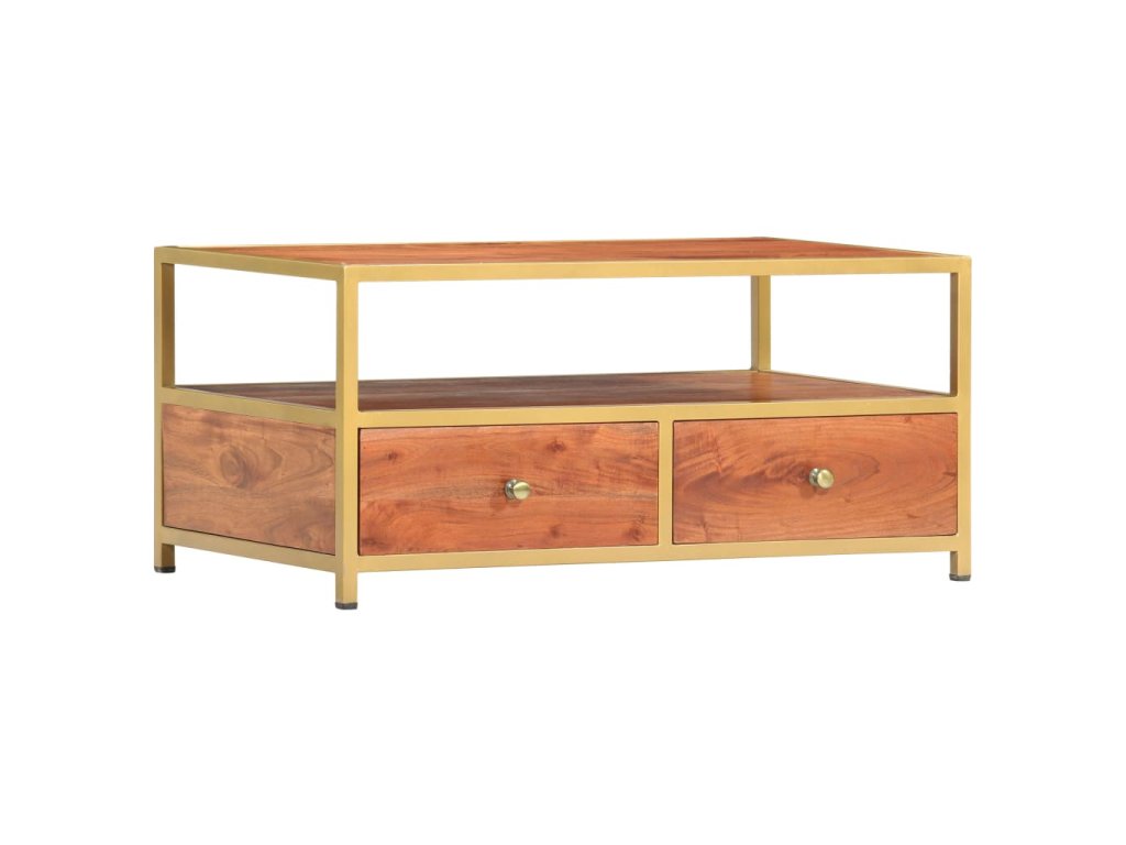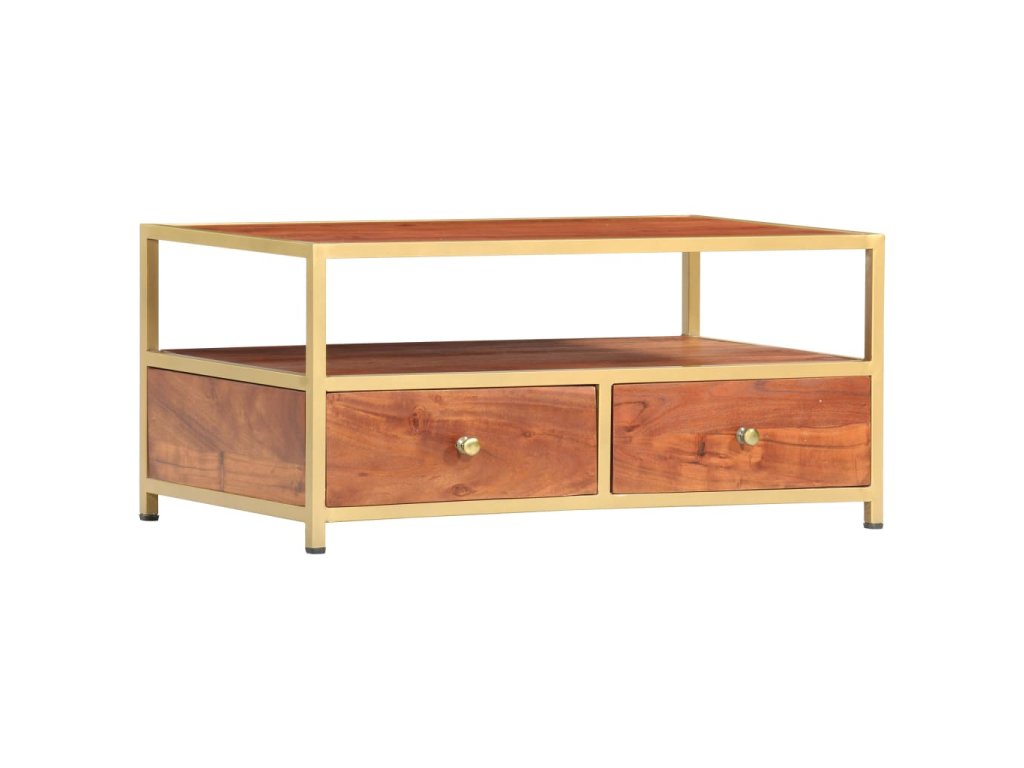 Stolek je zhotovený z masivního akáciového dřeva, které bylo vyleštěné, natřené a nalakované, čímž stolek získal svůj rafinovaný vzhled. Je také celý ručně vyrobený a nádherná kresba dřeva mu dodává jedinečný charakter, jímž se lehce liší od všech ostatních. Pevná stolní deska se skvěle hodí k podávání občerstvení či nápojů, ale můžete si na ni také položit lampičku nebo vystavit různé dekorativní předměty. Jedna otevřená přihrádka a dvě zásuvky vám nabídnou spoustu místa, kam si můžete uložit dálková ovládání, knížky, časopisy, zápisníčky a všelijaké další drobnosti, které chcete mít po ruce.