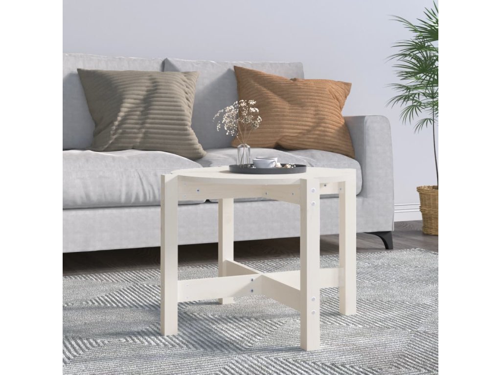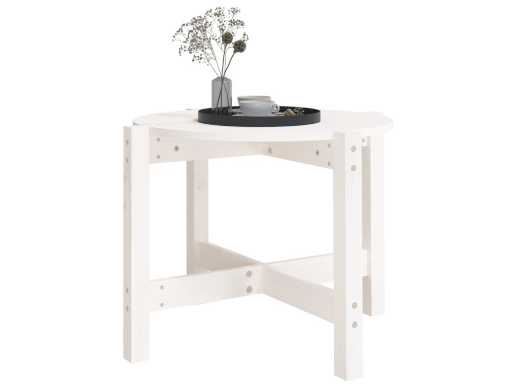 Konferenční stolek bílý Ø 62,5 x 45 cm masivní borové dřevo