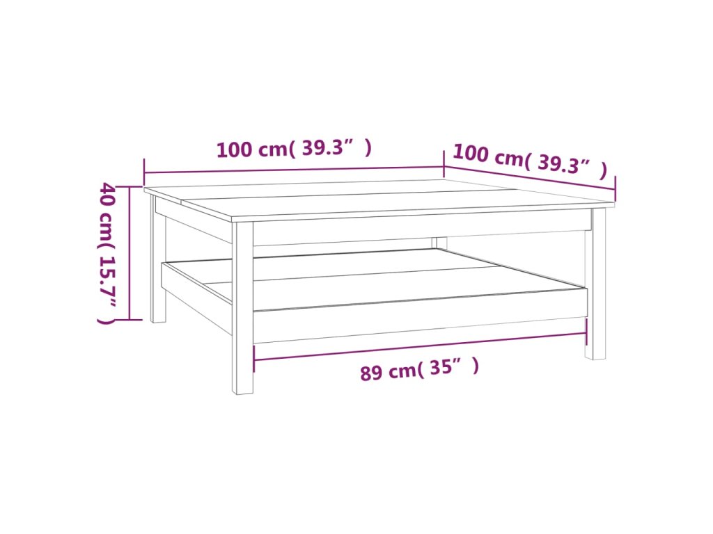 Konferenční stolek bílý 100 x 100 x 40 cm masivní borovice