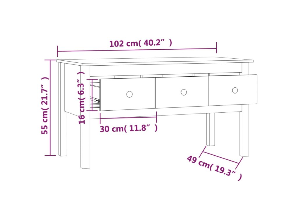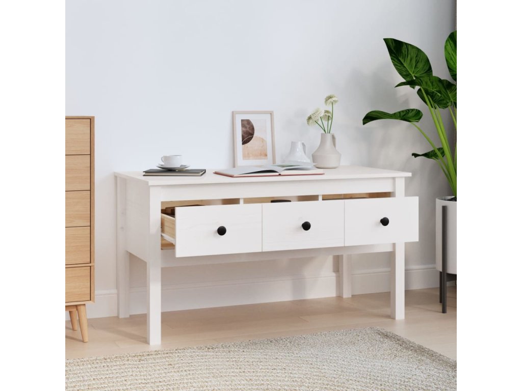 Konferenční stolek bílý 102 x 49 x 55 cm masivní borové dřevo