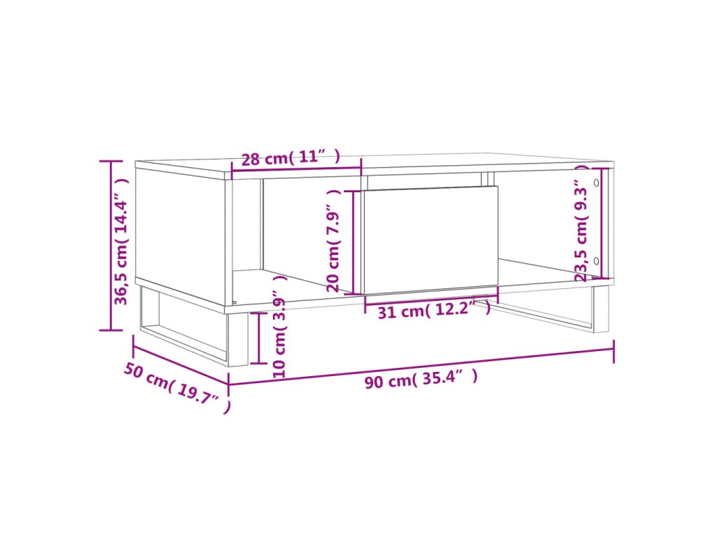 Konferenční stolek bílý 90 x 50 x 36,5 cm kompozitní dřevo