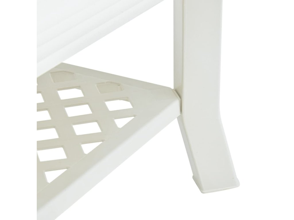 Je zhotovený z klimaticky odolného plastu, takže se nemusíte obávat, že barva stolu vybledne nebo se začne olupovat. Je ideální pro každodenní venkovní použití. Ve spodní části najdete odkládací polici, kam si můžete odkládat časopisy, knihy nebo jiné náležitosti, které chcete mít na dosah ruky. Stolek je lehký a snadno se přenáší. Žádná montáž není nutná.
