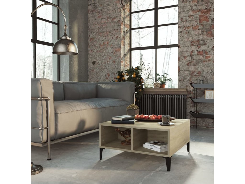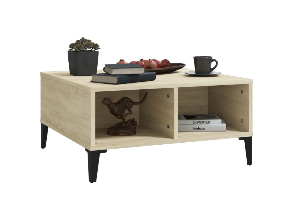 Tento konferenční stolek je vyrobený z kompozitního dřeva, které zaručuje jeho robustnost, odolnost a dlouhotrvající funkčnost. Kovové nohy mu také dodávají extra stabilitu. Tento odkládací stolek má 4 přihrádky, které poskytují dostatek úložného prostoru. Robustní deska stolku je ideální pro servírování nápojů a jídla nebo pro odkládání dekorativních předmětů. Stolek do obývacího pokoje navíc snadno očistíte vlhkým hadříkem.