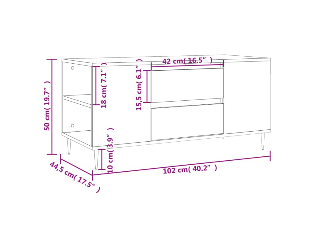 - Rozměry: 102 x 44,5 x 50 cm (D x Š x V)