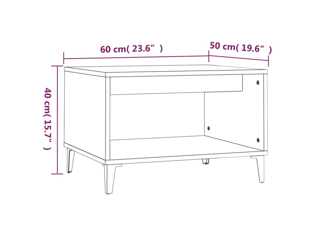 - Kovové nohy: Stolek do obývacího pokoje má kovové nohy, které dodají vašemu interiéru moderní a uvolněný styl a zároveň zajistí stabilitu.