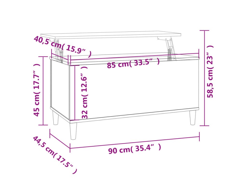 - Design se zvedací deskou: Stolní deska tohoto stolku k pohovce se dá hladce zvednout do pohodlné výšky, a tím jej přeměnit na místo, kde můžete pracovat nebo stolovat.