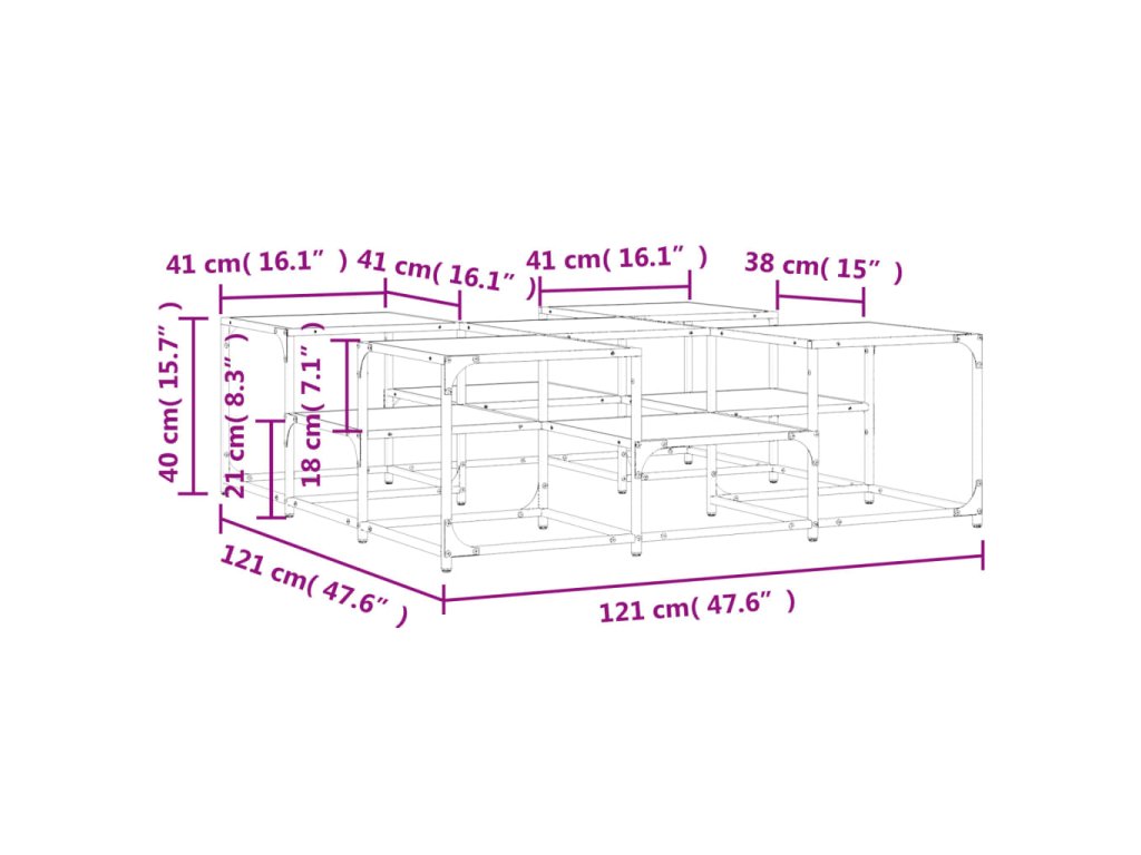 - Rozměry: 121 x 121 x 40 cm (D x Š x V)