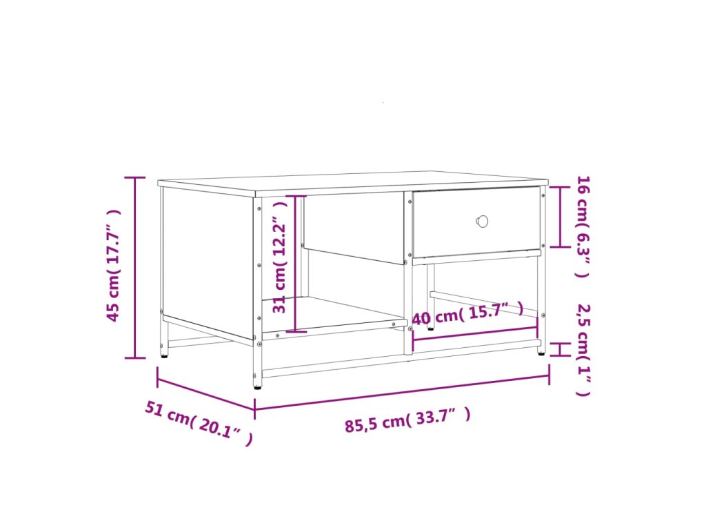 Konferenční stolek kouřový dub 85,5x51x45 cm kompozitní dřevo